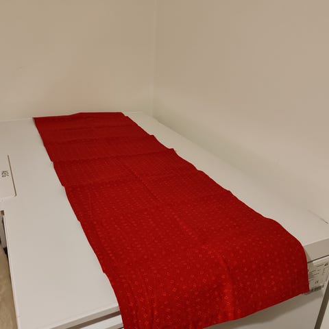 Muija markiisikankaasta kaksinkerroin ommeltu, on molemmilta puolilta samanlainen, kaikki saumat piilossa. Ommeltu erittäin siististi joten en ole varma onko jonkun itse ompelema, vai tehdastekoinen.