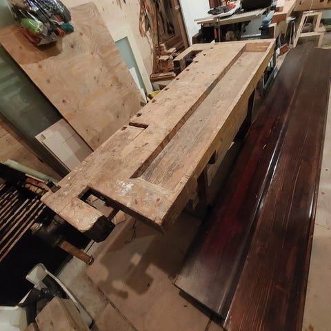 Kuvan mukainen seinää vasten sijoitettava höyläpenkki
