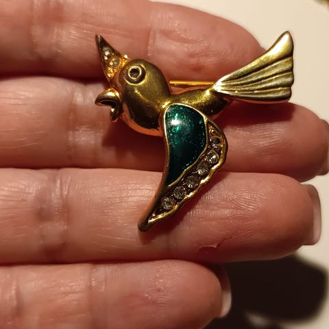 Tosi kaunis lintu rintapinssi, kullattu.