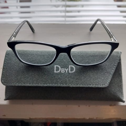 Erinlaisia silmälaseja, sekä silmälasikoteloita.