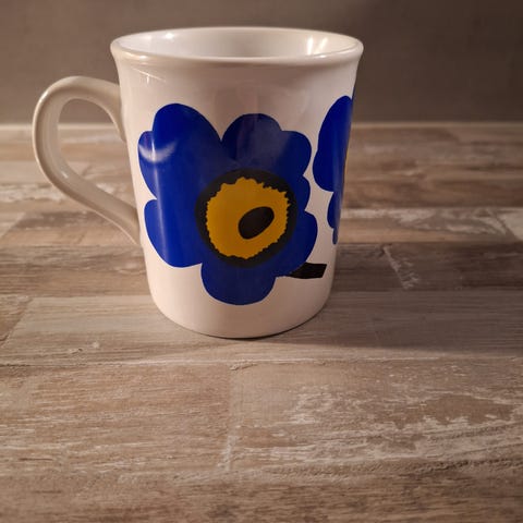 Unikko puuteri-tummansininen-valkoinen 4 dl muki Marimekko. Japani-muki