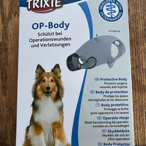 Trixie OP-Body suojaa koiran leikkaushaavoja ja vammoja. Väri harmaa, koko S. Materiaali pehmeä ja joustava, suunniteltu estämään koiraa nuolemasta tai raapimasta haavoja. Tukeva tarrakiinnitys. Postit lisätään hintaan.