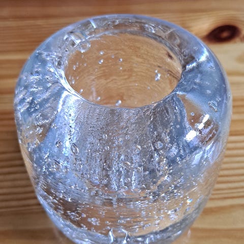 Kuvan mukaan pohjassa hyvin pienet naarmut,jotka ei näy, muutoin, kuin katsomalla tarkasti pohjaa ja mitä kuvissa näkyy.