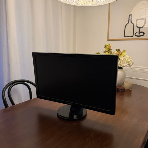 Asus 27 tuuman näyttö, pitäisi toimia normaalisti, paitsi pieni naarmu etupuolella, ei löydy jalkaa tai piuhoja eli tule hakemaan halvalla pois.