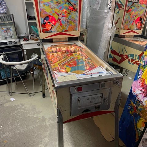 ikäisekseen hyvässä kunnossa oleva flipperi.