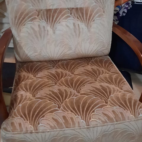 Käytönjälkeä on vuosien varrella kertynyt, vähän molemmissa käsinojissa kissan kynsimäjälkiä sekä oikealta puolelta käsinojasta pieninahkan pala irti (kuvissa)