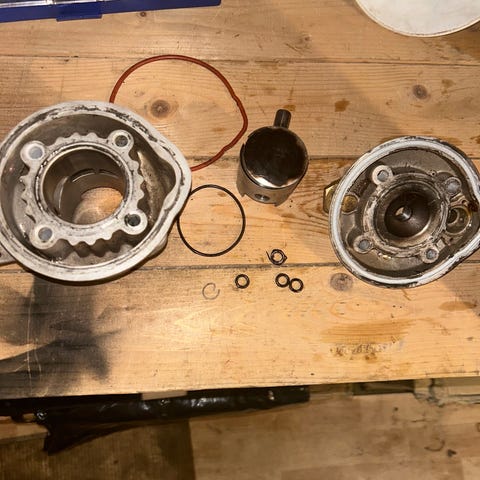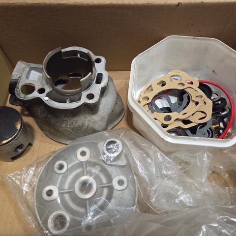 Airsal 70cc pytty, kansi, mäntä, tiivisteet+ giannelli tehari, josta revennyt ainakin yksi kiinnike.