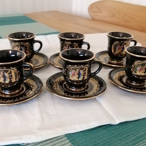 Kreikkalainen käsintehty kahviastiasto – 24K kultaukset – 6 hlö