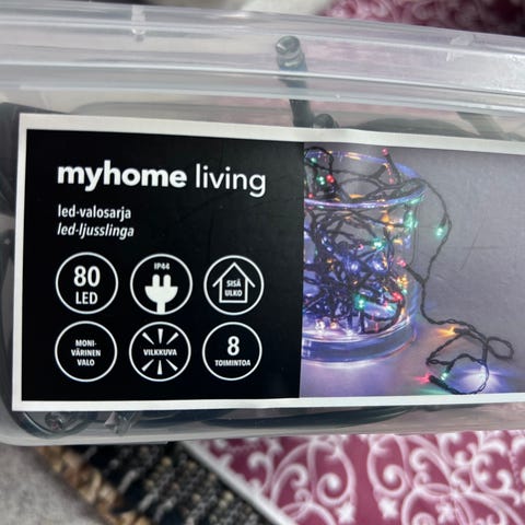 Myydään käyttämätön monivärinen 240 valon LED valosarja. Sisä- ja ulkokäyttöön. Haku Hiukkavaarasta.