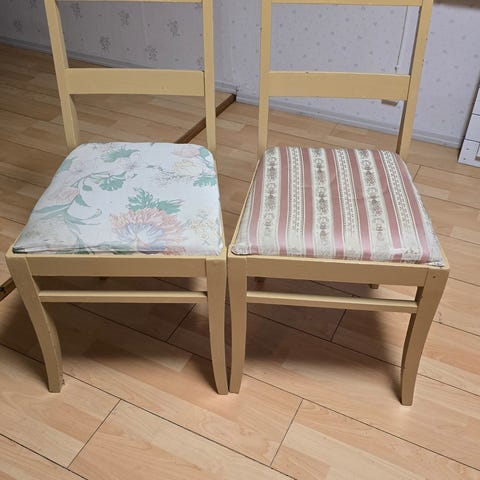 Uudet kankaat vaihdettu istuimiin, vanhat kankaat uusien kankaiden alla.