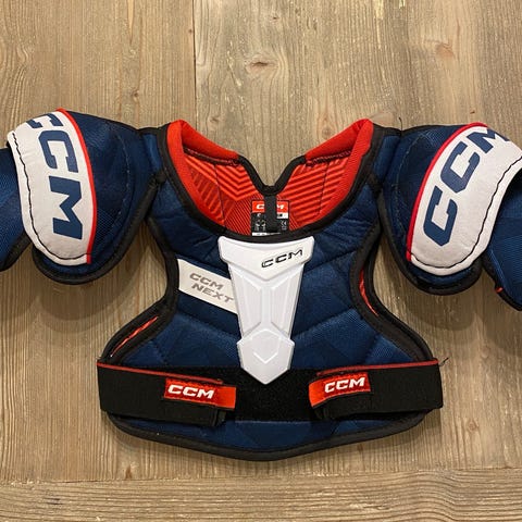 Vähän käytetty hartiasuoja. Merkki: CCM, koko M (juniorit).