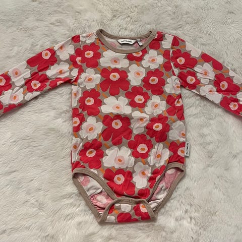 Myydään Marimekko Vinde body. Väri: punainen, vaaleankeltainen ja liila.