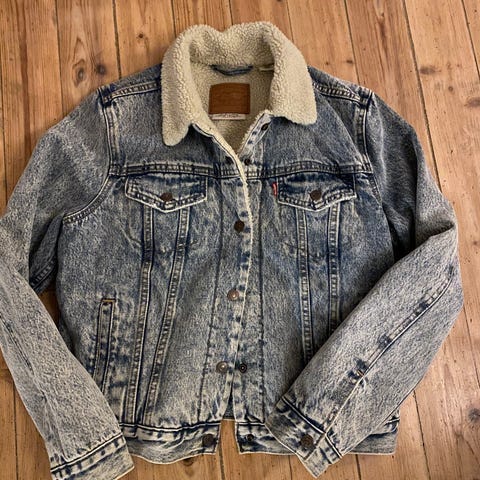Levi’s sherpa farkkutakki, jossa irrotettava ketunruskea tekoturkis kaulus.