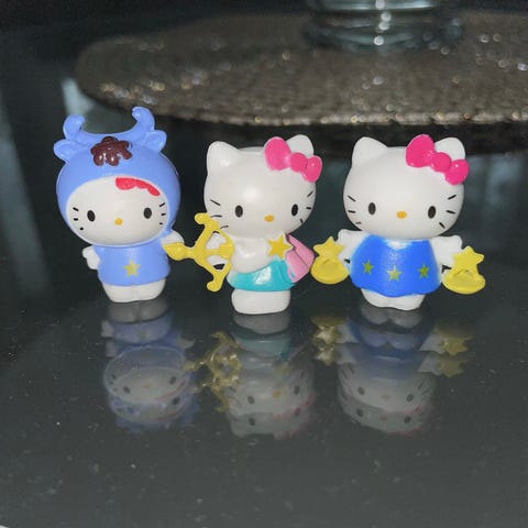 Hello Kitty My Melody hahmot, 2 kappaletta. Väriltään violetti ja vihreä. Materiaali muovi. Sopii lasten leikkeihin ja keräilyyn. Hinta 3€ kpl