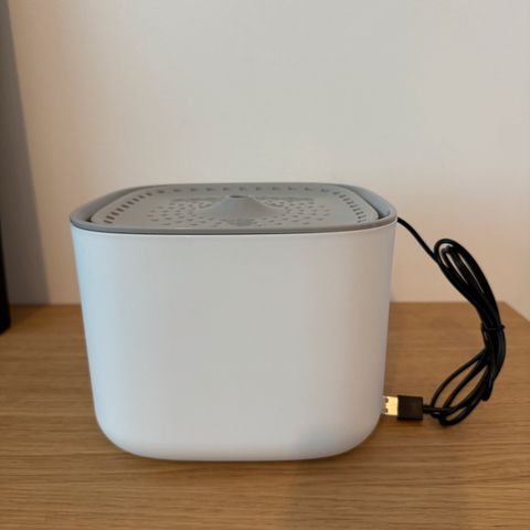 Akulla toimiva vesilähde, ladataan USB-C kautta. Laitteessa liiketunnistin, joten akku kestää pitkään!