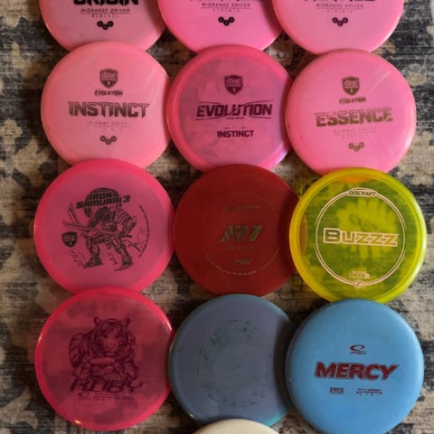 Discmania: Maestro mid-range, Evoluution tactic, Genius driver, MD² P-LINE, Evolution instinct, P2 Pro putter, MD2 D-line ja FD fairway driver,