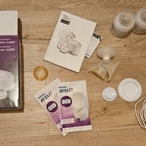 Tammikuu -23 ostettu Philips avent kaksiosainen rintapumppu. Settiin kuuluu sangallinen kuljetuslaukku, pieni kylmälaukku, kaksi tuttipulloa ja itse laite tarvikkeineen. Laturi ehjä. Tuttipulloissa mukana tuttipäät virtausvoimakkuus 2 (0+kk). Kaupasta saa uusia tuttipäitä. Viime talvena vaihdettu uudet venttiilit rintapumppuun, varaosia saa Philipsin sivuilta.