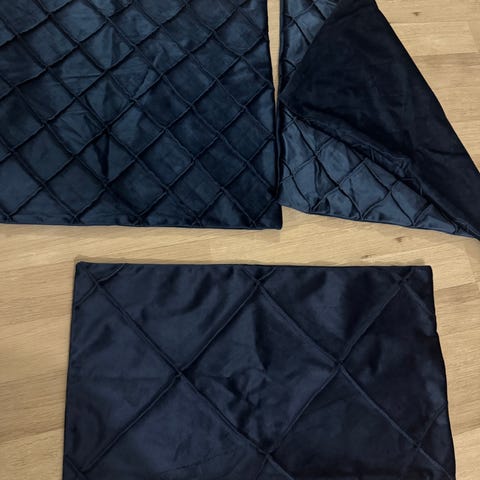 Kaksi kaunista samettista tyynyliinaa.