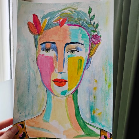 Maalaus nainen valkoisessa mekossa