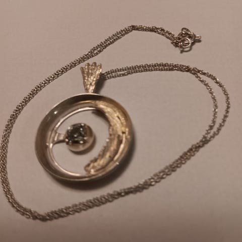 Kaunis Aukusti Paatolan Kuopion kultasepät Oy hopea 835 kaulakoru. Koruosa 2 cm, ketju ympärys 40cm. Postit ostajalle.