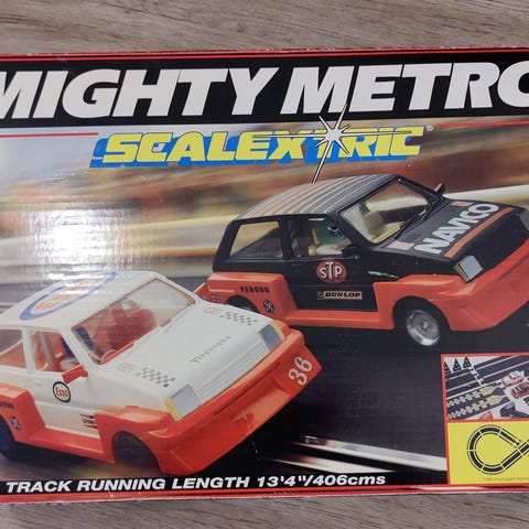 2 x autorata 80-luvulta. Kaikki osat ovat tallessa. Radat voi yhdistää. En ole nyt koonnut, joten toimivuudesta ei ole takeita. Muutama vuosi sitten sain toimimaan, mutta autojen meno oli vähän pätkivää.