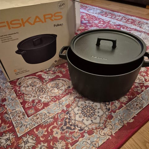 Täysin uusi ja käyttämätön Fiskarsin iso pata/pannu. Voi käyttää uunissa, pannulla, grillissä tms. Ovh yli 200€.