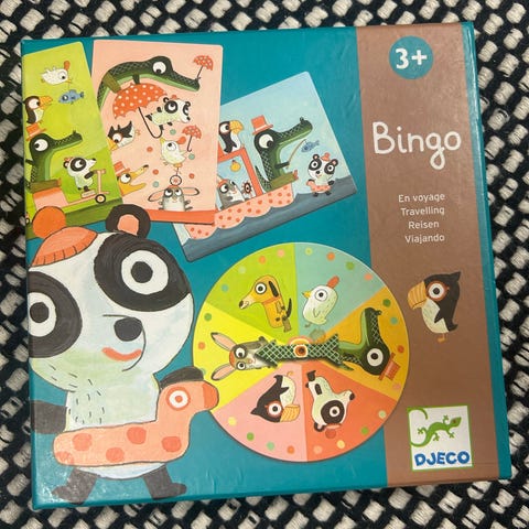 Alga Bingo peli. Sisältää arvontapallot, numerokuulat, 15pelikorttia, 1 numerokortti, pelimerkit ja säännöt.