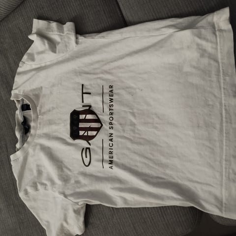 Gant harmaa ja sininen t-paita koossa 122/128cm. Harmaasta löytyi kuvatessa edestä tahra, joka vielä pesty kuvan oton jälkeen ja on nyt sekin tahraton. Siistejä siis molemmat.