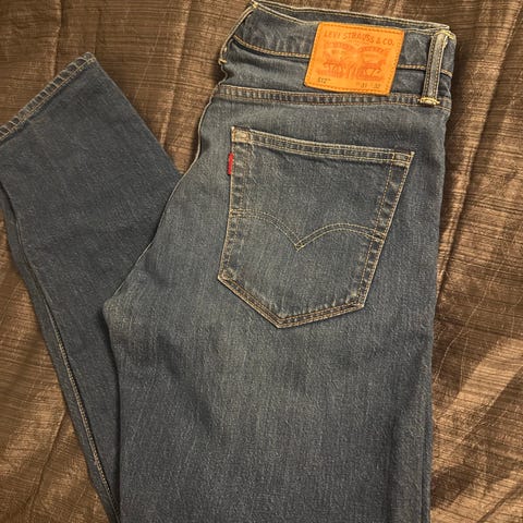 Levi's siniset denim-farkut miehille, koko L32, vyötärönympärys W31. Valmistettu denim-materiaalista.