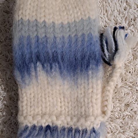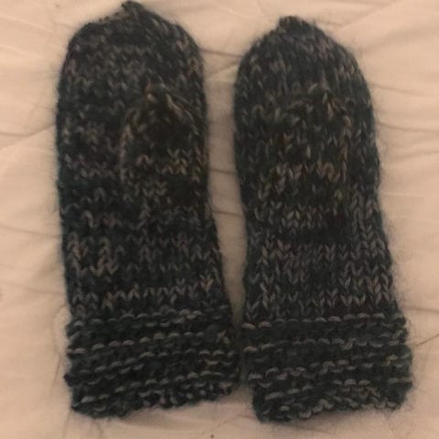 Lämpimät äitini kutomat mohairvilla lapaset. Sisältä kevyesti harjattu.