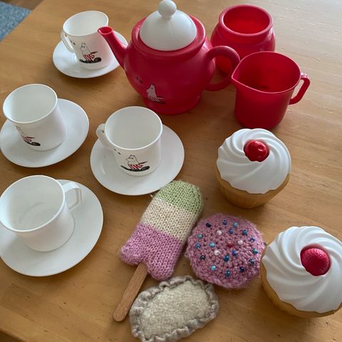 Myydään ihanat kotileikki ruuat, ostoskori ja muumi salkku astioineen. Kaikki kuvissa oleva yht. 25€. Paljon puisia herkkuja ja ruokia, osa muovisia.