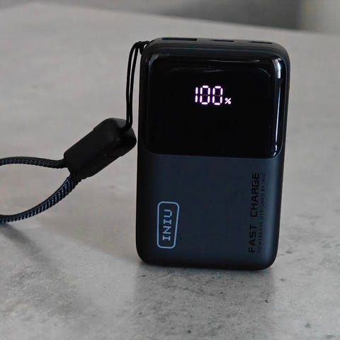 Uusi 10000 mAh power bank. Latauksen näyttö.