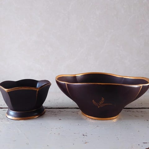 Arabia pienet vanhat Art Deco kynttilänjalat, keramiikka. Suunnittelija Greta-Lisa Jäderholm-Snellman. Ei leimoja.