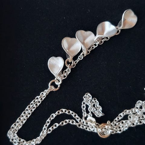 Korussa on 10 hopea sydäntä, joista yksi ketjun päässä.