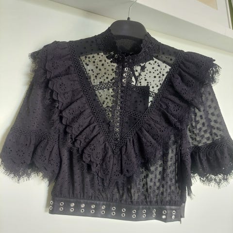 Laadukas läpinäkyvä pitsipaita. Erikoinen / Designer tuote. Ei käytetty (raskaudesta johtuen oma koko muuttunut nopeasti). The Kooples koko: 1 (mielestäni ranskassa 38 ja suomessa 36, jos yleistää). Materiaali Puuvilla, Polyesteri. Voin lähettää ilmaiseksi. Muuten nouto joko Helsingin Herttoniestä, Espoon Otaniemestä tai Vihdin Nummelasta tai Kirkonkylästä.