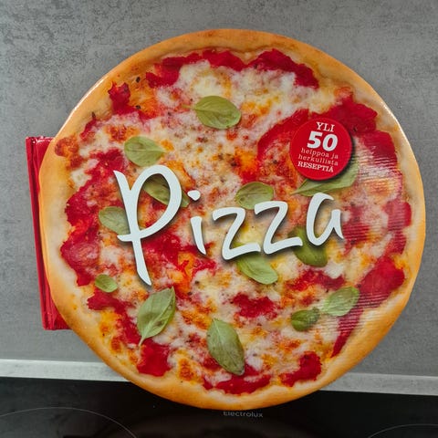 Readme.fi Pizza kirja sisältää erilaisia pizzareseptejä ja ohjeita pizzan valmistukseen. Kirja tarjoaa kattavan valikoiman täytteitä ja valmistustapoja pizzan tekemiseen kotona. Kirja on muodoltaan pyöreä