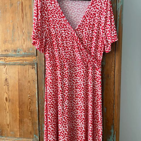 Indiska kietaisumekko koko M, punainen kukkakuvioitu kangas.
