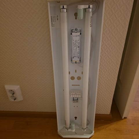Loisteputkivalaisimet 2 kpl , pituus 121,5 cm . Näissä ei vanhan mallin sytyttimiä , toimineeko LED putkillakin? . Nouto.