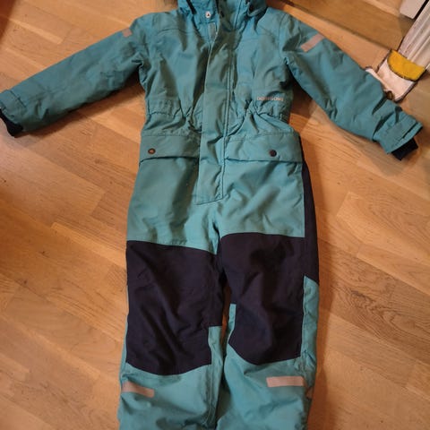 Didriksons Theron Kids cover 3 toppahaalari, väri lähinnä oranssinpunainen. Koko 110, mutta pidennykset avattu joten meni vielä 116-122 kokoisella.