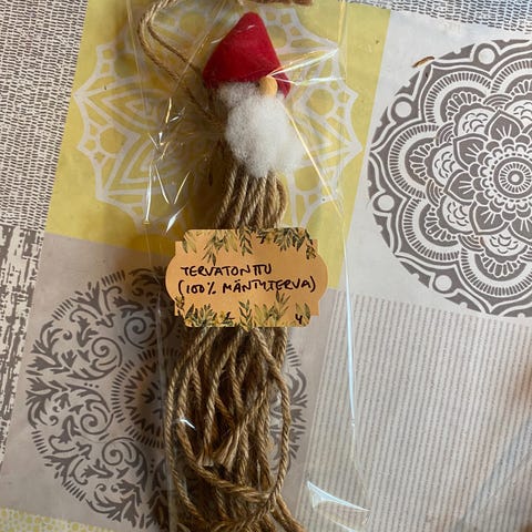 Käsintehty tervatonttu saunaan antamaan tervantuoksua löylyihin. Ei valuta tervaa. 100 % mäntytervaa.