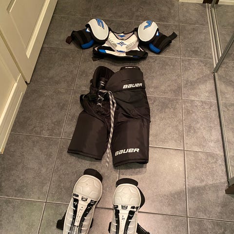 Jääkiekko varusteita. Tosi hyvässä kunnossa. Suunnilleen C juniori kokoa.