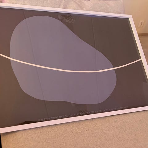 Marimekko Ilves taulu. Valkoisilla Ikean kehyksillä.