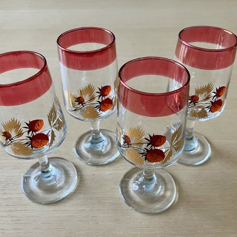 Lähes käyttämättönät pienet liköörilasit tai sherrylasit. Korkeus 14 cm, suuaukon halkaisija 4,5 cm. Ovat I-laatua, olen itse irrottanut tarrat.