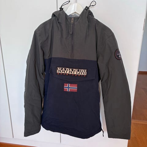Anorakin ulkomateriaali on kierrätettyä polyamidia ja sisävuori on polyesteria.