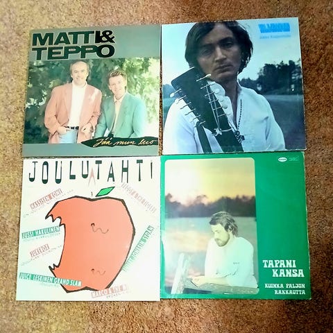 Jukka Kuoppamäki Lapsuuteni Lumijoulu LP, vuodelta 1973. Levyssä on jonkinverran naarmua.
