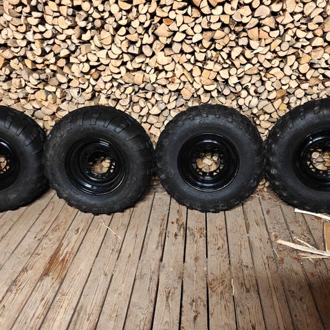 Polaris aluvanteet ja Carlisle rengassarja sisältäen neljä rengasta alumiinivanteilla. Renkaat soveltuvat mönkijään ja ovat käytettyjä. Vanteet ovat alumiinimateriaalia. Hinta haettuna Raumalta.