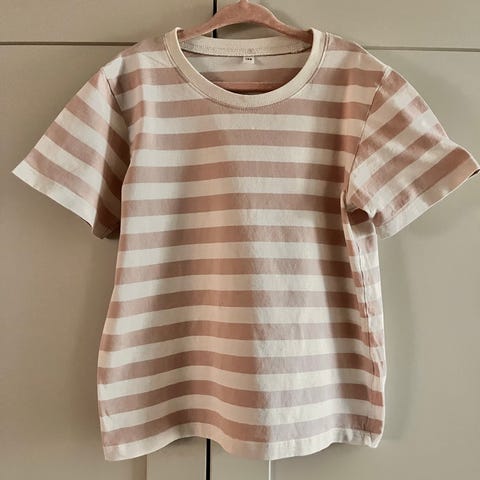 Muji eläinkuvioinen T-paita. Paidan helmassa saukon tms. kuva. Vaaleanpunainen. Pieni käytön jälki rinnassa.