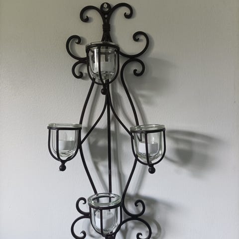 Myytävänä metallista valmistettu, tukeva tuikkuteline.