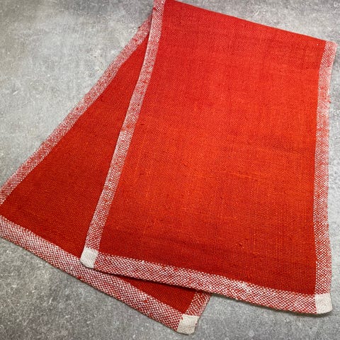 Turkoosinsininen kaitaliina rohdinpellavaa. Liina on pesty, joten sen tekstuuri on pehmentynyt alkuperäisestä.