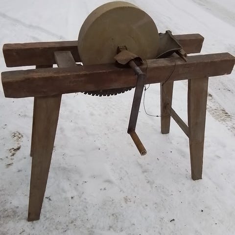 Myydään tarpeettomana kuvanmukainen Kirunan tahko, smirgeli kulunut ja kivessäkin hieman osumaa, muuten kyllä toimiva peli.